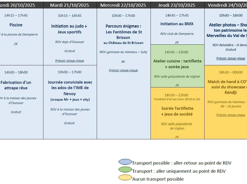 Pensez à consulter le livret ci-dessus, vous y trouverez toutes les informations nécessaires pour chaque activité (horaires, lieux, navette, pique-nique….).