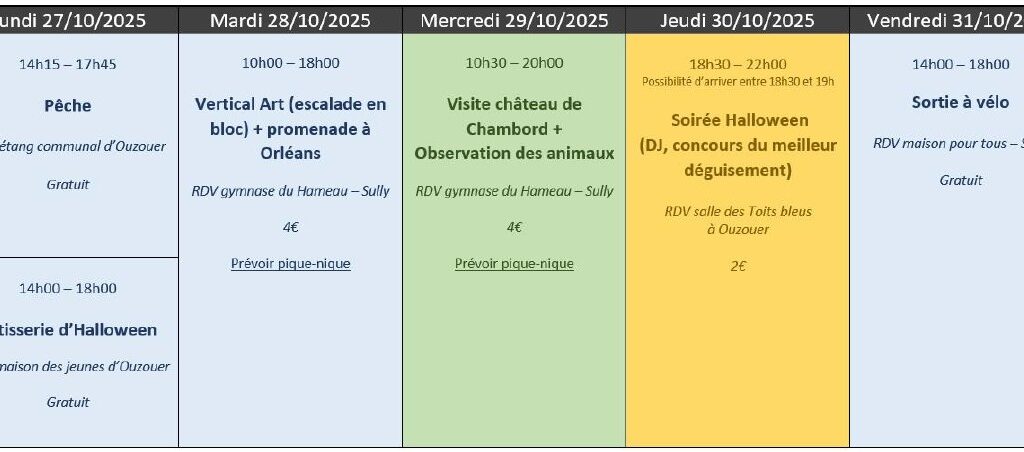 Vacances d’Automne du 20 octobre au 31 octobre 2025