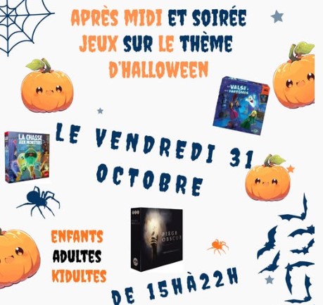 Après-midi et soirée Jeux sur le thème d'Halloween le vendredi 31 octobre de 15h à 22 h à l'Arcatène.
