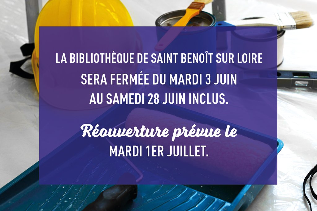 La bibliothèque de Saint-Benoît-sur-Loire sera fermée au public du mardi 3 juin au samedi 28 juin inclus, afin de permettre l’achèvement des travaux de rénovation.
